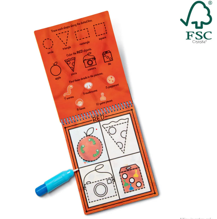עברו על המשטח עם טוש המים ויתגלו ציורים צבעוניים בחוברת.