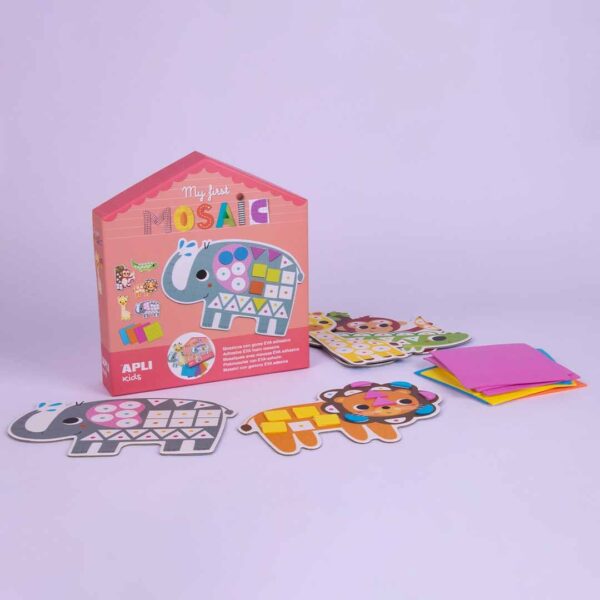משחק מוזאיקה מסדרת “הראשונה שלי” בנושא חיות. המשחק כולל כרטיסים גדולים במיוחד בצורות של חיות ג’ונגל וספוגי EVA צבעוניים.