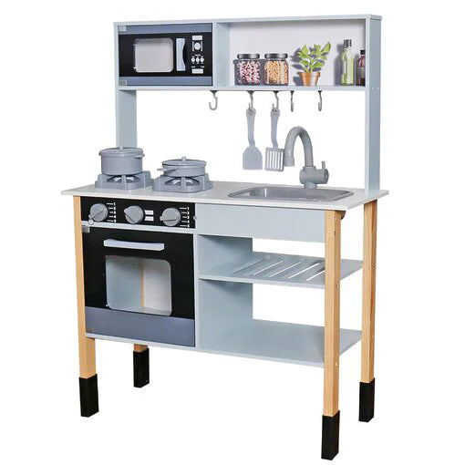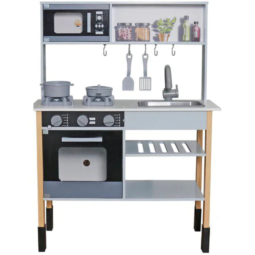 מטבח מעץ לילדים דגם רון עם אורות וצלילים, תנור, מיקרו וכיור כולל אביזרי אפייה ובישול