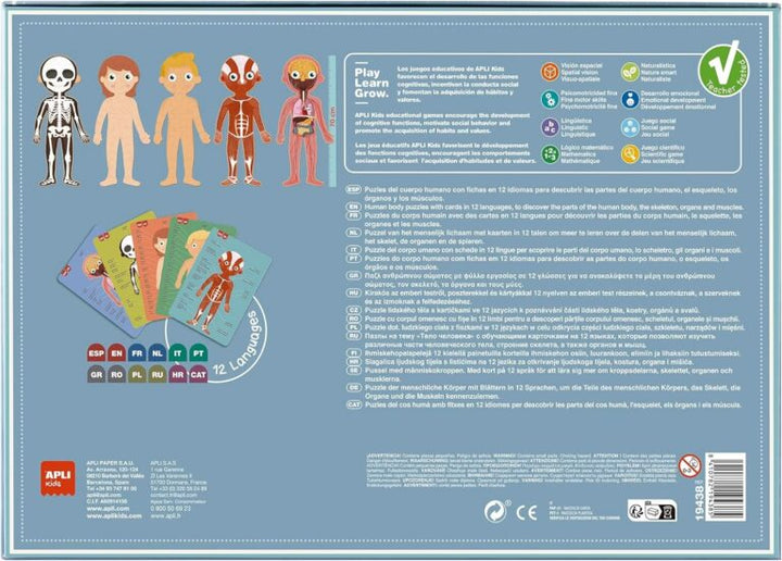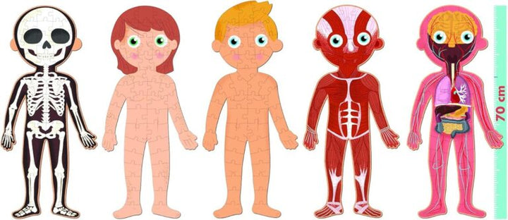 פאזל מרהיב וחינוכי מבית APLI Kids, שמזמין את הילדים למסע מרתק דרך 5 שכבות שונות של גוף האדם מהשלד, דרך השרירים, ועד לאיברים הפנימיים! הפאזלים גדולים, איכותיים ומעוררי סקרנות.