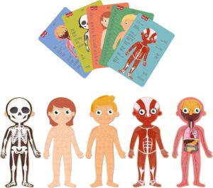 • כל פאזל מציג שכבה שונה בגוף האדם: שלד, שרירים, איברים פנימיים, עור ועוד