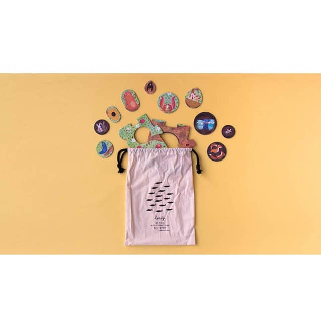 הצד האחורי הוא אותו עץ בסתיו, עם החיות שלו המתפנקות בכובעי הצמר שלהם מוקפים תפוחים ועלים זהובים – פשוט חמודים מדי.