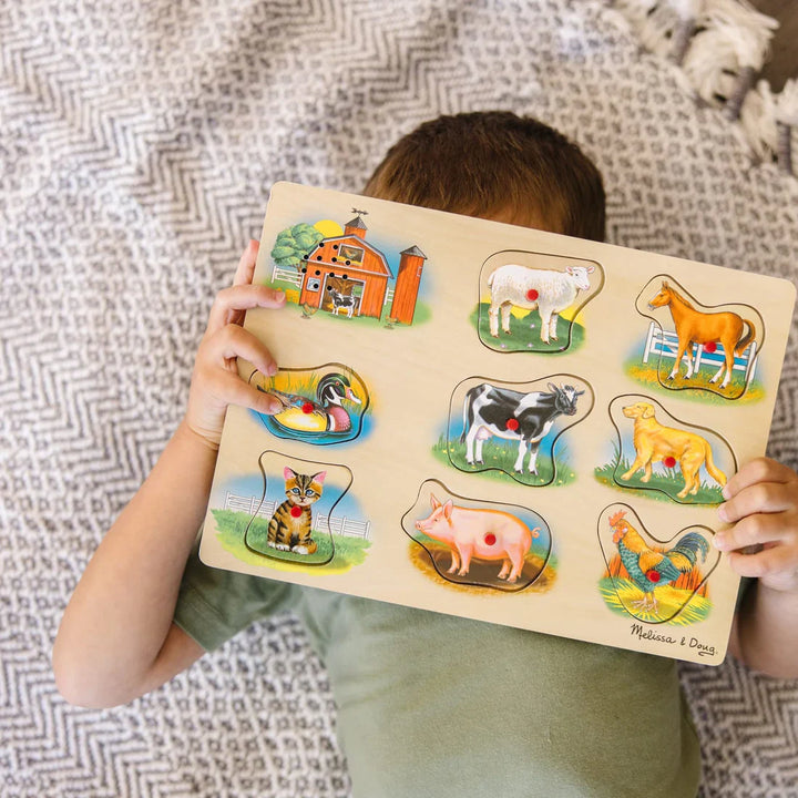 פאזל צלילים מעץ חיות החווה מבית מליסה ודאג.